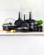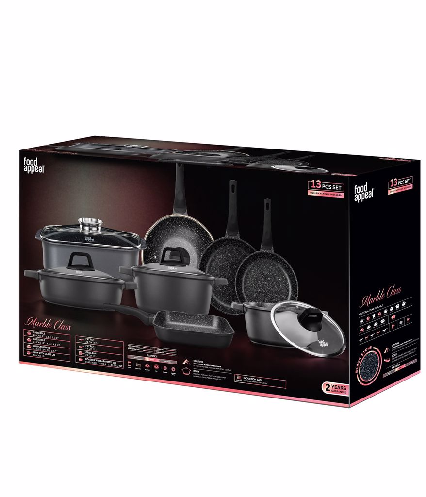 סדרת MARBLE CLASS פרי פיתוחה של חברת food appeal מביאה לכם את הדור הבא של הבישול הטביעי באבן שיש עם עיצוב מרהיב וטכנולוגיה חדשנית אשר הופכים את תהליך הבישול לחוויה! כלי הבישול מסדרת MARBLE CLASS מיוצרים בטכנוגיה חדשה של יציקת אלומיניום המאחדת את גוף הכלי והמשטח החיצוני ליחידה אחת חזקה ועמידה ביותר. הכלים מיוצרים בעובי משתנה, בסיס עבה ושוליים צרים, לנוחות השימוש ואפקטיביות חום מרבית. משטח פנימי מאבן שיש MARBLE CLASS הינו משטח בעל תכונות נון-סטיק מעולות. אינו מכיל כימיקלים רעילים ומהווה חלק מיציקת הסיר.