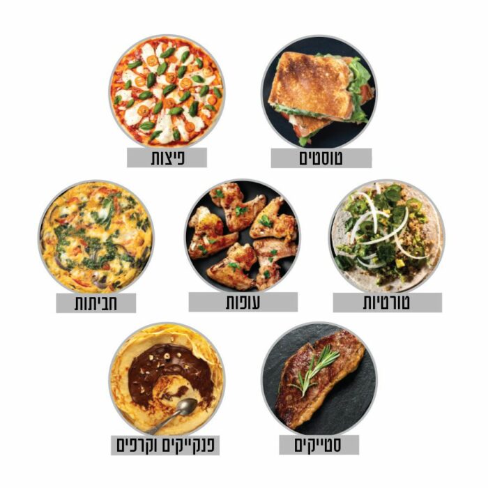 זה לא רק תנור פיצה – במכשיר אחד, ניתן להכין מגוון רחב של מתכונים – חביתות, אומלטים, פנקייקים, טוסטים, טורטיות, קרפים ועוד!
