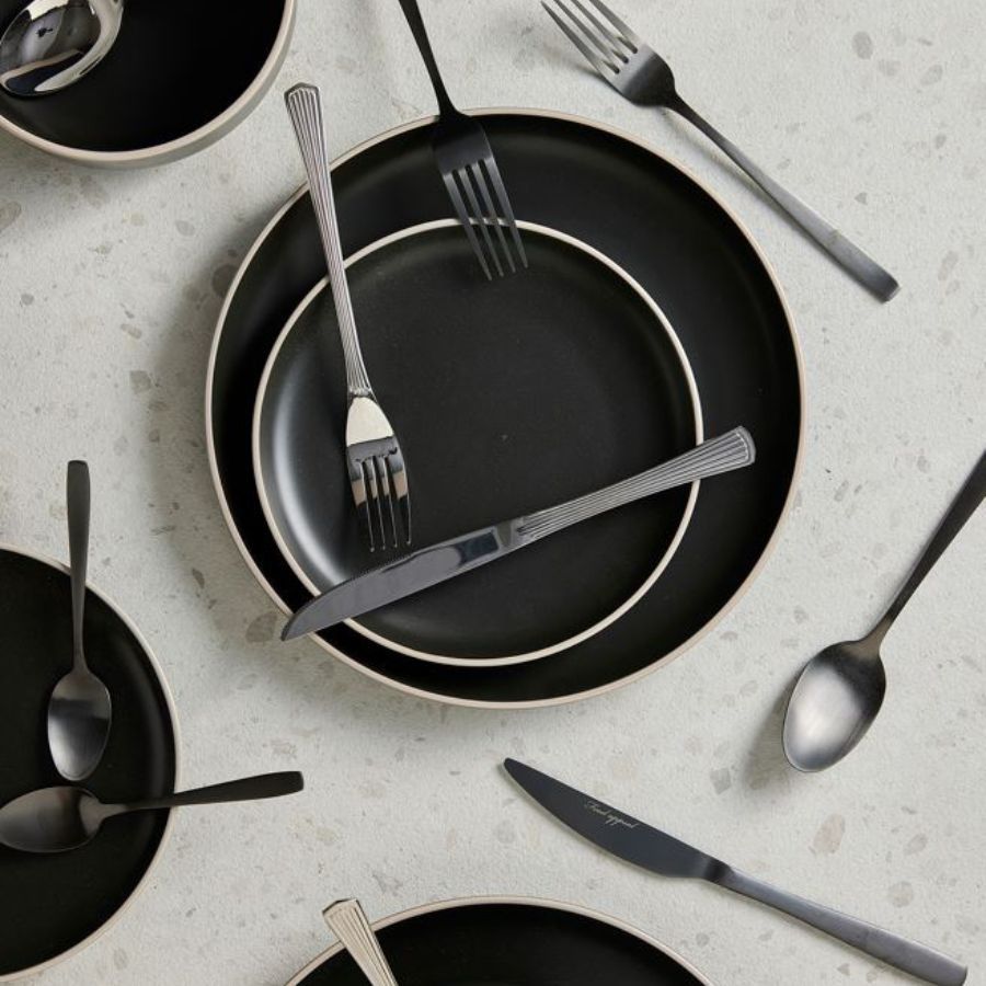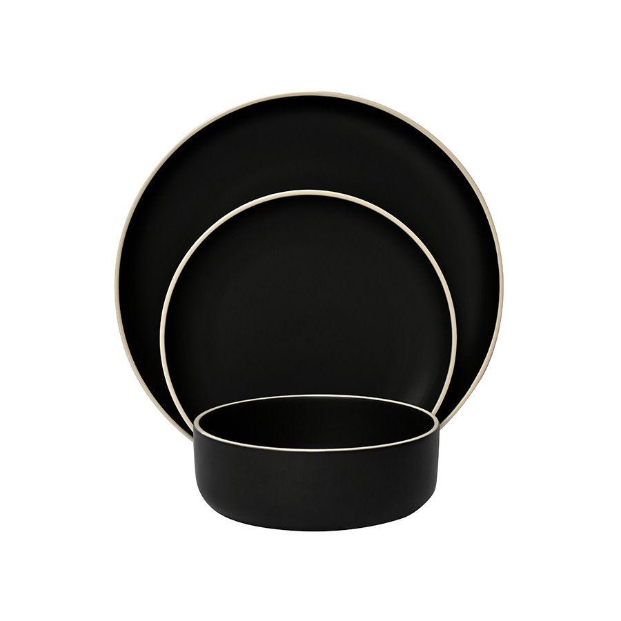 סט אוכל 18 חלקים קרמיקה שחור פס טבעי LINES