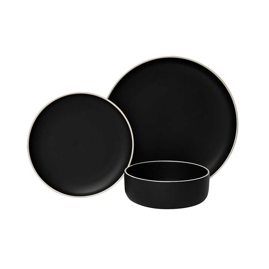Home طقم صحون סט אוכל 18 חלקים קרמיקה שחור פס טבעי LINES